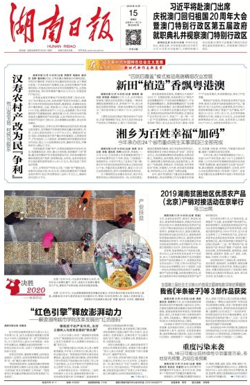 《湖南日报》2019年12月15日头版报道马博平台改革发展情况