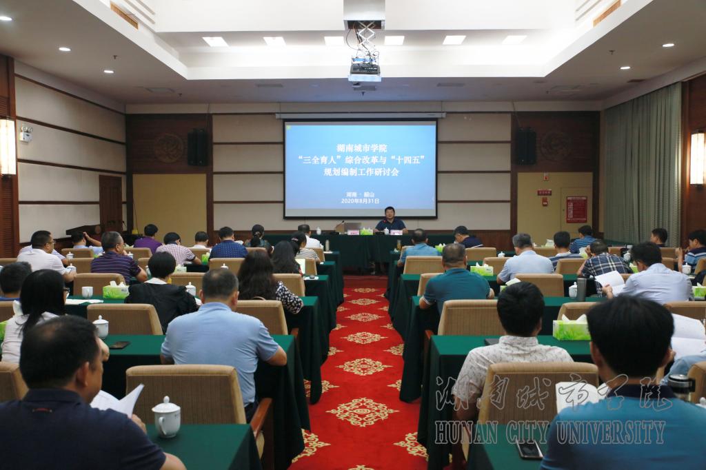 本网讯(记者 文彦波)  2020年8月29日-31日,我校在伟人故里韶山召开务虚会,集中研讨“三全育人”综合改革与“十四五”规划编制工作。党委书记罗成翼作专题报告,党委副书记、校长李建奇主持会议,全体校领导、正处级干部、主持工作的副处级干部参加会议。