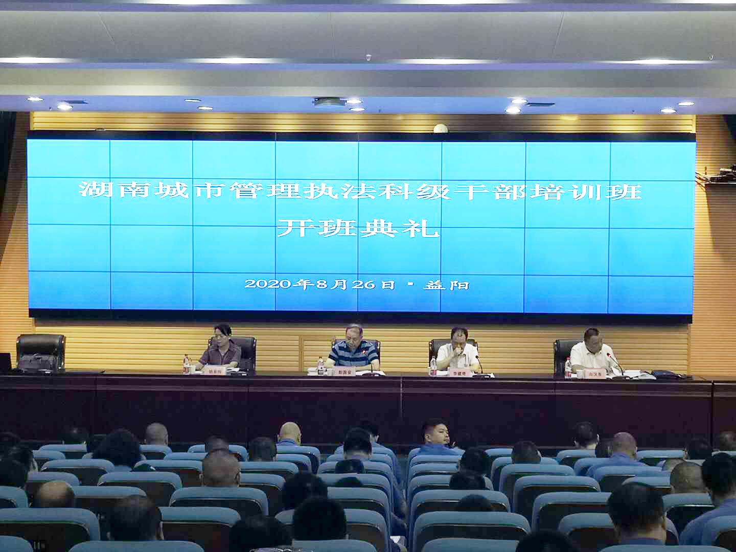 本网讯(通讯员 龚茂华)2020年8月26日-28日,湖南省城市管理执法科级干部首期培训班在我校举行。校长李建奇出席开班典礼并致欢迎辞,湖南省住房和城乡建设厅二级巡视员彭国安同志讲话,学校纪委书记姚春梅出席开班典礼。来自全省各市、县(区)城市管理执法实职科级干部220人参加培训。