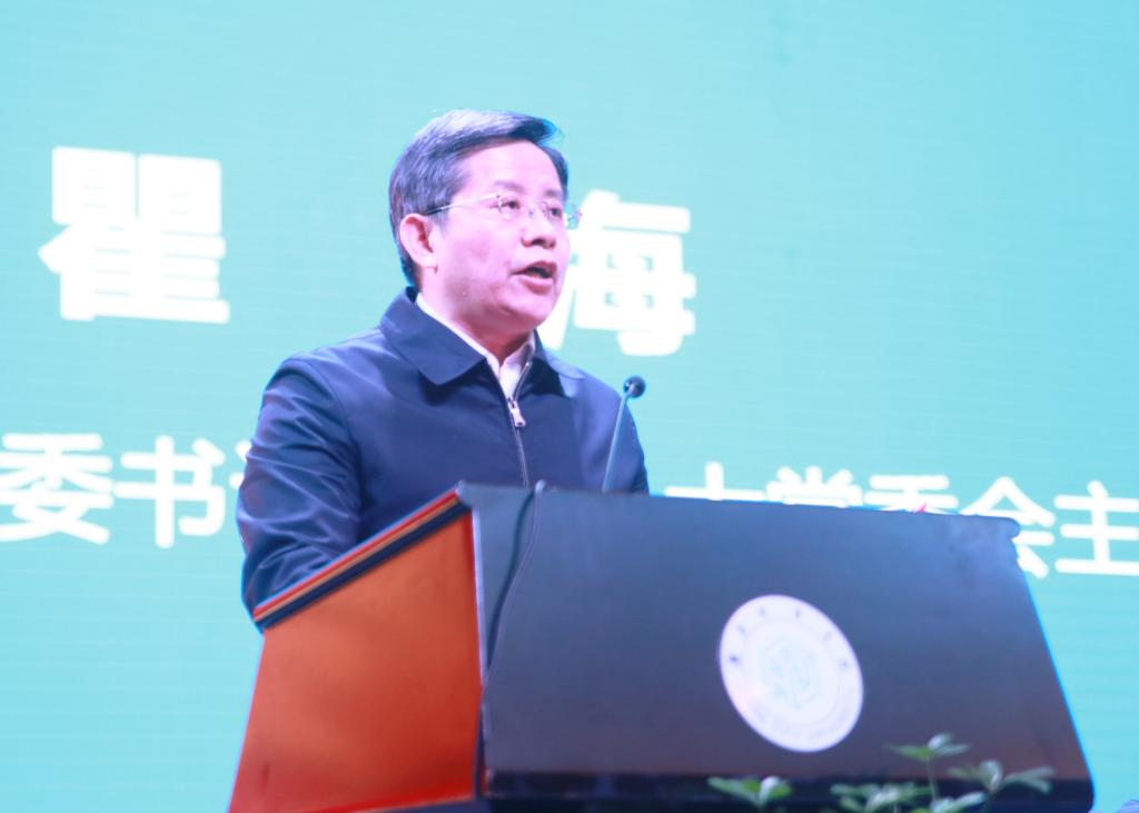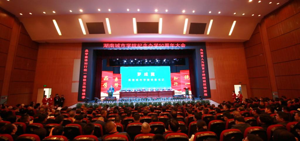 学校党委书记罗成翼致辞。他深情回顾了学校50年办学历程。合并前的两校艰苦创业、迎难而上,为学校发展积淀了厚实根基。学校初创者和历届领导者们白手起家,迎难而上,艰苦创业,坚守师范定位,培养了一大批名校长、名教师,为地方基础教育做出了重大贡献。突出城建特色,依托行业办学,对接中小城镇,为全省市县培养了大批规划建设人才,被国家教委确定为全国示范性高工专重点建设学校。新组建的城院抢抓机遇、融合奋进,为学校发展开启崭新征程。本世纪初,顺应高等教育体制改革大潮,马博平台应运而生。两校合并伊始,快速推进深度融合。更新教育观念,转变教育模式,顺利实现从专科到本科的转型。2012年,第二次党代会明确了“三步走”发展战略,不断完善本科教育教学体系,人才培养质量不断提高,顺利通过了教育部本科教学合格评估,推进新校区二期工程建设,完成了两校区合一,办学质量与办学效益大幅提升。新时代的城院破立并举,改革创新,稳中快进实现了跨越式发展。2016年第三次党代会以后,学校顺应教育领域综合改革的时代潮流,自主全面系统地推进整体性重塑,以大改革推进了快发展。开展“三个发展”大讨论,制定“一二三五”发展战略;目标导向分类大发展,做强城建类学科、做大信息制造类学科、提质管理服务类学科、夯实基础类学科;破立结合推进大改革,一是破分而散,立精而集、专而能的机构调整与编制改革。将16个二级学院调整为12个。二是破身份限制,立业绩导向和核心指标导向的绩效分配与目标管理考核改革,激发干事创业活力。三是破守摊平庸,立能上能下,41名处级干部主动退出领导岗位,一批80后博士教授走上重要中层岗位。四是破封闭僵化,立校企(地)合作、产教融合的应用型人才培养模式改革,构建“1234”应用型人才培养体系。五是破粗而松,立细而实、紧而准的精细管理改革,开源节流创造近2亿效益。六是破传统滞后,立应用型、现代型制度体系的大学制度改革,推进治理体系和治理能力现代化。改革创新取得大成效。4年多来,新建运动场、和学生公寓,校园道路提质、美化亮化、教学楼栋改造等基本建设,职工待遇和幸福指数显著提高,获批“湖南省新增硕士学位授予单位立项建设单位”;高水平通过了教育部本科教学工作审核评估;跻身湖南省“高水平应用特色学院”行列;2020年,列入湖南省本科第一批次招生,实现了几代城院人的梦想。