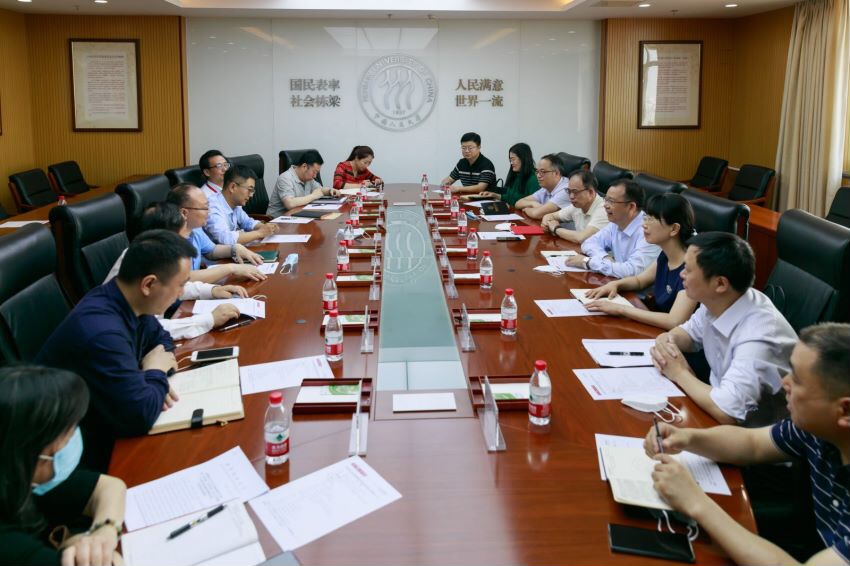 胡百精对该校的情况做了简要介绍,重点介绍了该校在智慧教学方面的举措与经验。随后双方就党史学习教育、智慧教学、学科建设与研究生教育等相关情况深入交换了意见。