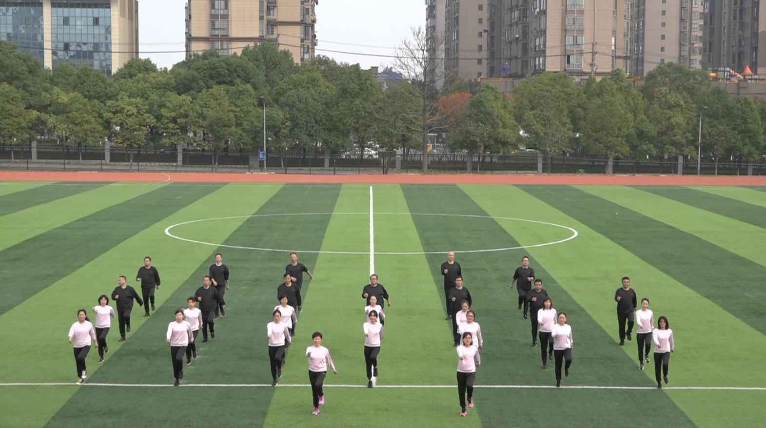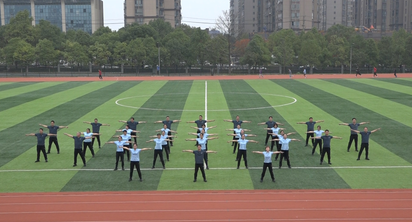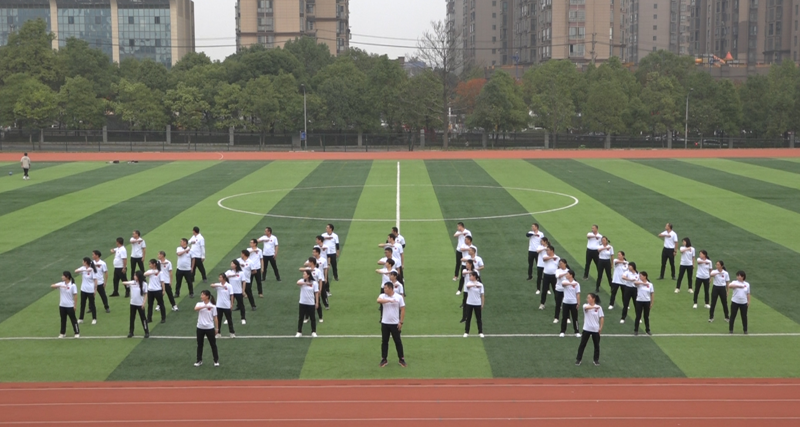 本网讯(通讯员 周敏)为推动全员健身活动的深入开展,活跃教职工业余文化生活,展示教职员工积极向上、团结协作的精神风貌。2021年10月27-29日,我校2021年“全员健身,活力城院”教职工第十套广播体操比赛在东田径场举行,全校20个分工会组成的16支代表队共六百余人参加了比赛。