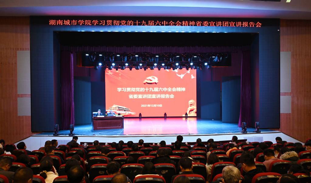 本网讯(通讯员 周文娟 摄影 博夕)12月10日下午,按照中央和省委部署要求,学习贯彻党的十九届六中全会精神省委宣讲团宣讲报告会在马博平台举行。省委宣讲团成员、湖南广播影视集团有限公司(湖南广播电视台)党委副书记、总经理、台长、总编辑龚政文作宣讲报告。全体在家校领导、全校副科级以上干部、学生辅导员、基层党支部书记和部分学生代表300余人参加宣讲会。党委副书记、校长汤放华主持宣讲会。