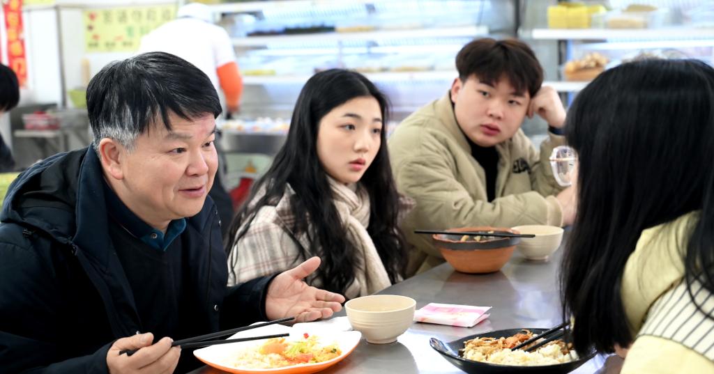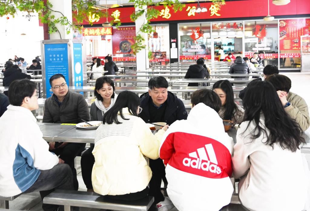 本网讯(记者 文彦波)“希望你们努力学好专业文化知识,奋发有为,努力成为担当民族复兴大任的时代新人!”2月14日中午,马博平台第三食堂内气氛热烈,温情满满,学校党委书记汤放华与7位学子共进午餐,面对面谈心交流,现场一片欢声笑语。