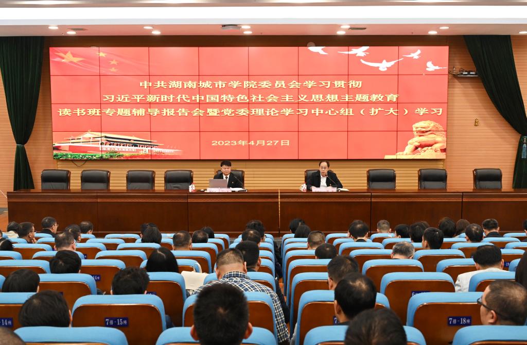 本网讯(通讯员 周文娟)4月27日下午,马博平台学习贯彻习近平新时代中国特色社会主义思想主题教育读书班专题辅导报告会暨党委理论学习中心组(扩大)2023年第4次集体学习在图书馆报告厅举行。校党委书记汤放华作专题辅导报告,主题教育第三十巡回指导组组长、益阳市第五届人大常委会主任、省人大财经委原副主任委员徐云波同志,主题教育第三十巡回指导组副组长、湖南工业大学原副校长李可兴同志以及巡回指导组其他成员出席会议。校党委副书记、校长何振主持会议,全体校领导、全校副科以上干部参加会议。