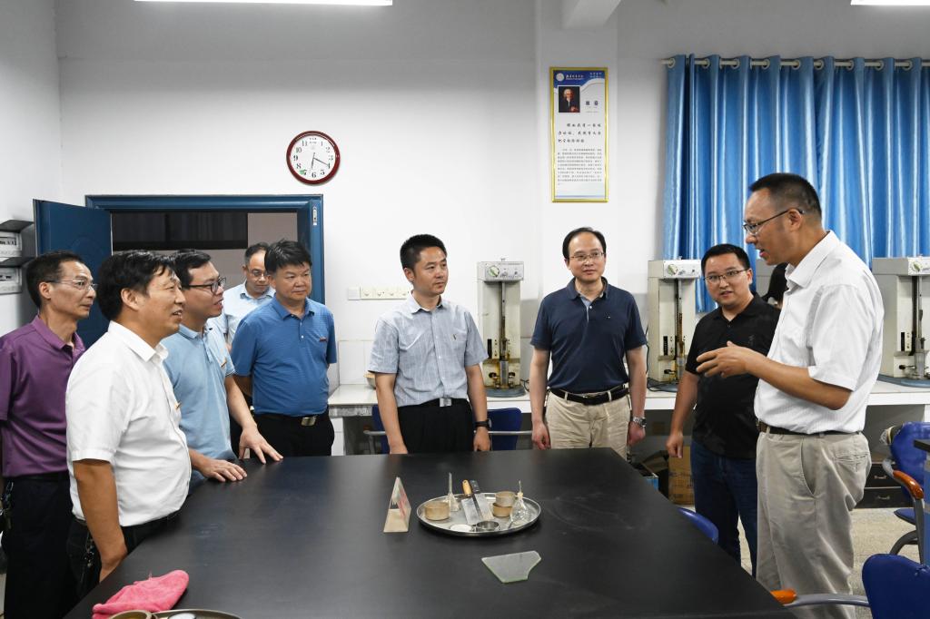 本网讯(供稿:土木工程学院)根据教育部高等教育司和湖南省教育厅关于开展国家级实验教学示范中心阶段性总结入校考察的工作要求,7月17日下午,由中国科学技术大学张增明教授、国防科技大学王鹏教授、湖南师范大学谭亮教授等组成的专家组,到我校土木工程国家级实验教学示范中心(以下简称“中心”)开展现场考察。校党委书记汤放华、校长何振、副校长雷存喜以及教务处、土木工程学院、中心的相关领导陪同考察。