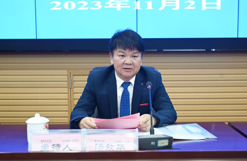 汤放华强调,面对新时代高等教育发展机遇和挑战,要以习近平新时代中国特色社会主义思想为指导,始终坚持社会主义办学方向,全面深化改革,团结奋斗,以更加饱满的工作热情,更加务实的工作作风,更加有力的工作举措,努力担当作为,为建设特色鲜明的高水平应用型大学贡献智慧和力量,积极投身教育强国建设民族复兴伟业!