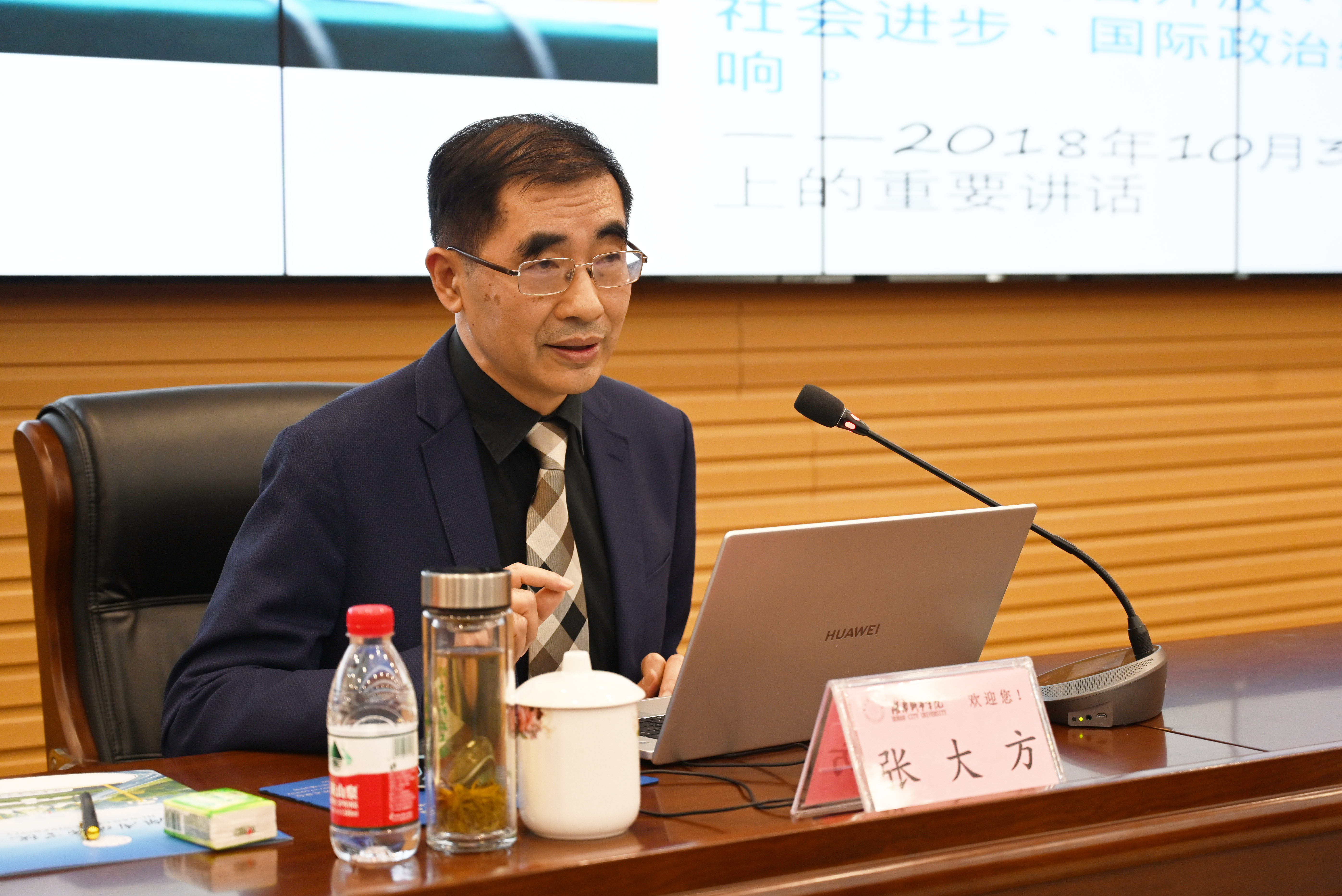 本网讯 11月22日,省政协原副主席、九三学社省委原主委、湖南大学张大方教授应邀来校,作了题为《人工智能技术及对现代文明的影响》的学术讲座。校长何振,益阳市委副书记、统战部部长邓斌出席。益阳市政协副主席、九三学社益阳市委主委、市科技局局长高德文主持。