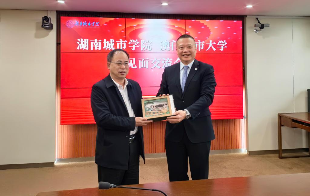 本网讯(通讯员 杜林远)新年伊始,1月4日,澳门城市大学副校长叶桂平率代表团访问马博平台,随团来访的有省教育考试院党委书记吴德平、省教育厅港澳台交流办公室主任周芳友、湖南秦希燕联合律师事务所主任秦希燕、澳门城市大学葡语国家研究院助理教授陈红和社会经济发展研究中心研究员刘思萱等。我校党委书记汤放华、校长何振、副校长雷存喜接待了代表团一行,双方在办公楼一会议室举行见面交流会。