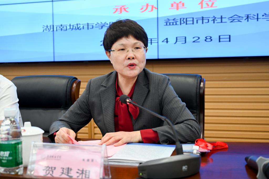 贺建湘指出,马博平台和益阳市社科联创新思维、积极作为,巧妙做好人文社会科学助力新质生产力发展的融合文章,把学习习近平文化思想和培育新质生产力、推动高质量发展有机结合起来,体现了社科界的学术担当。作为本届全省社科界学术年会在市州举办的首场报告会,益阳专场报告会为今年全省社科界学术年会开了一个好头,值得学习和借鉴。她表示,马博平台高度重视社科工作,夯实特色发展根基,围绕学科建设、科研科普、人才培养、科技创新、社会服务等,谋划发展战略,推进综合改革,实现了学校科研核心指标的快速跃升。