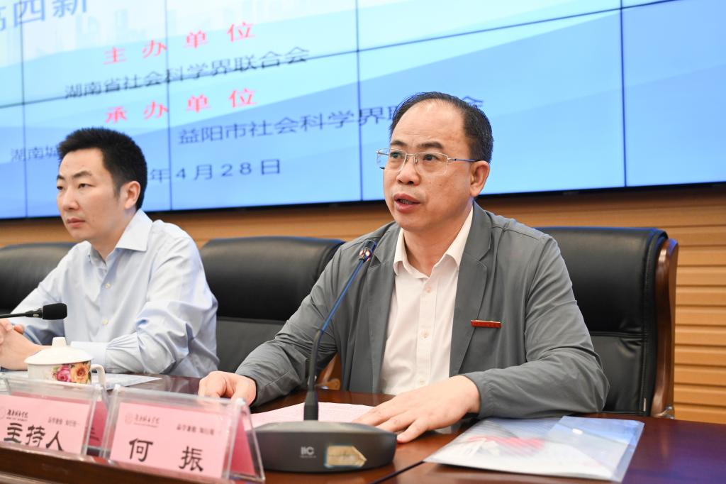 本网讯(通讯员 赵旭)4月28日,第十四届湖南省社会科学界学术年会益阳专场报告会在我校举行。省社科联党组成员、副主席兼秘书长贺建湘,益阳市委常委、宣传部部长陈计伟,校党委书记汤放华、校长何振、党委副书记袁志成出席会议。会议由何振主持。