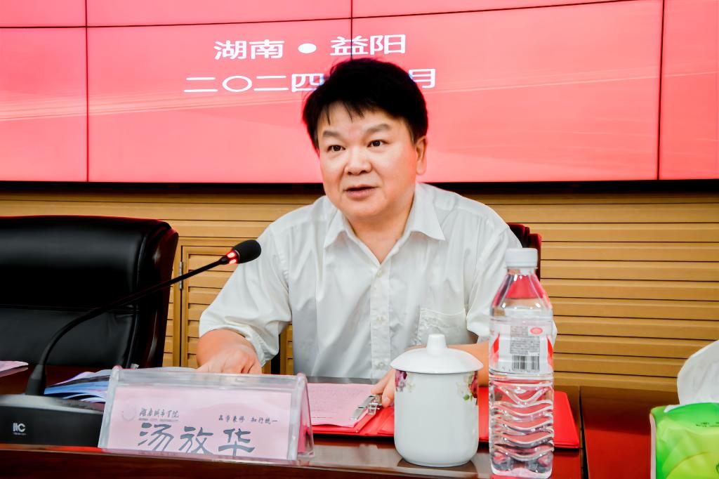 汤放华代表学校致辞,对省委教育工委、省教育厅及兄弟院校长期以来对我校事业发展的关心和支持表示衷心的感谢,并简要介绍学校基本情况及在思想政治教育工作上取得的成果。他提出,要积极探索并完善适应学校特色和学生需求的思政育人格局,引导广大学子与国家进步、民族复兴保持同频共振,确保人才培养质量与时代要求相契合。他希望,以本次培训班为契机,充分汲取专家学者的真知灼见、丰富营养,进一步强化辅导员队伍建设。