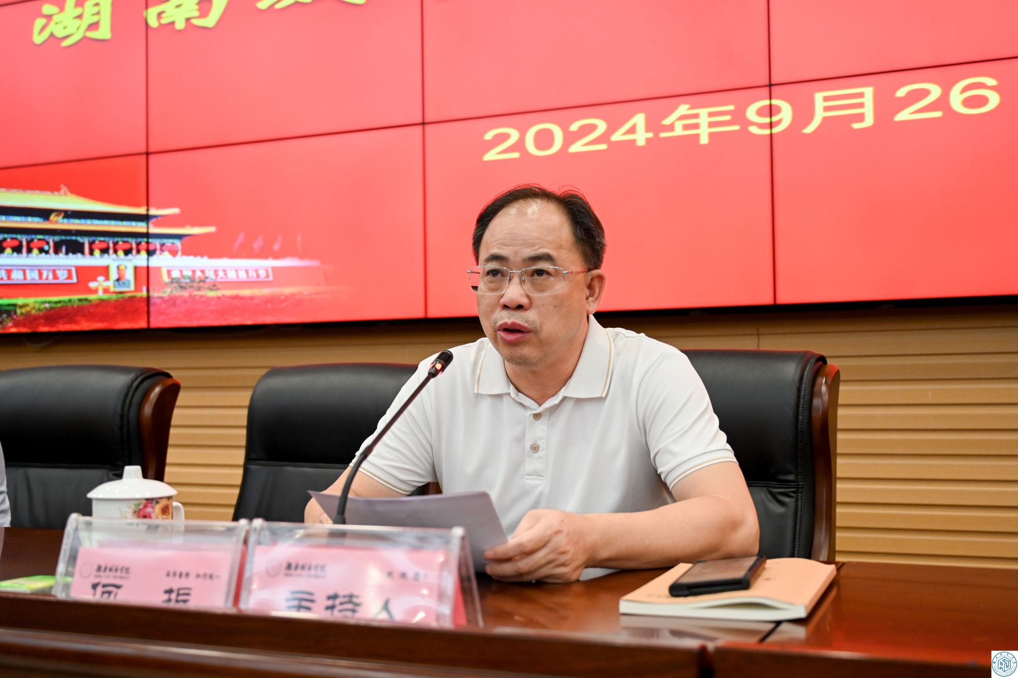 本网讯(通讯员 周文娟)9月26日下午,我校在图书馆报告厅举行学习贯彻党的二十届三中全会精神宣讲报告会暨学校党委理论学习中心组2024年第十一次(扩大)集体学习。省委宣讲团成员、省委党校科学社会主义教研部副主任戴辉礼教授做专题宣讲,会议由校党委副书记、校长何振主持。