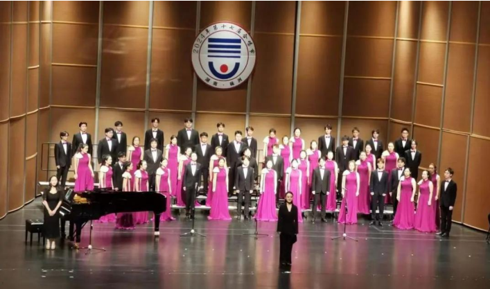 据悉,本次大赛由中国合唱协会主办,是我国合唱艺术领域具有权威性、导向性、示范性、严要求、高规格的合唱盛会,从1996年开始,至今成功举办了十七届,已成为中国合唱协会的重要音乐品牌之一。大赛以“唱响中国梦、讴歌新时代”为主题,共设置了童年组、青少年组、成人组、老年组等9个组别。来自全国123支优秀合唱团带来了许多经典的合唱作品。在此次合唱节上,马博平台澄音合唱团带去了《绿衣》《舟中望晓》两首新作,队员们用和谐美妙的声音、饱满真挚的情感以及默契十足的配合,征服了评委和观众,最终获得金奖。澄音合唱团指导教师易松的作品《盘王大歌》还获得了优秀新作品奖。