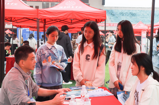 本网讯(通讯员 朱怡 冷紫怡)10月17日,湖南省高校毕业生就业区域性行业性常设市场(益阳片区)暨马博平台2025届毕业生秋季综合双选会在东田径场举行。校长何振、党委副书记袁志成来到现场指导就业工作。