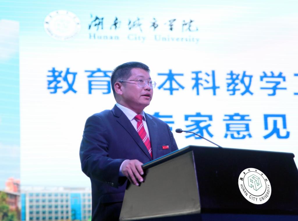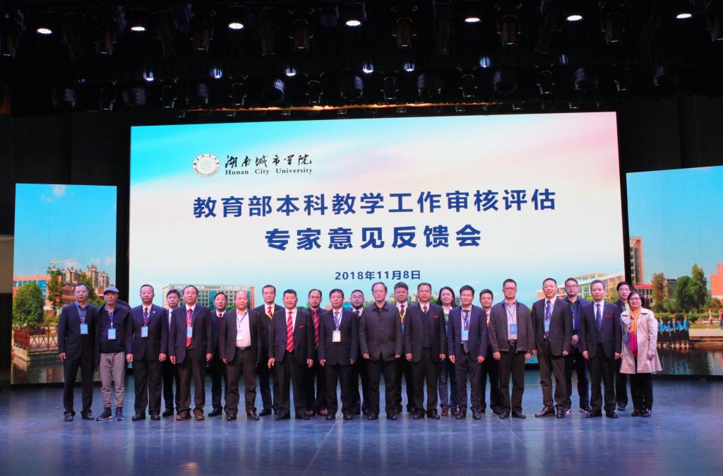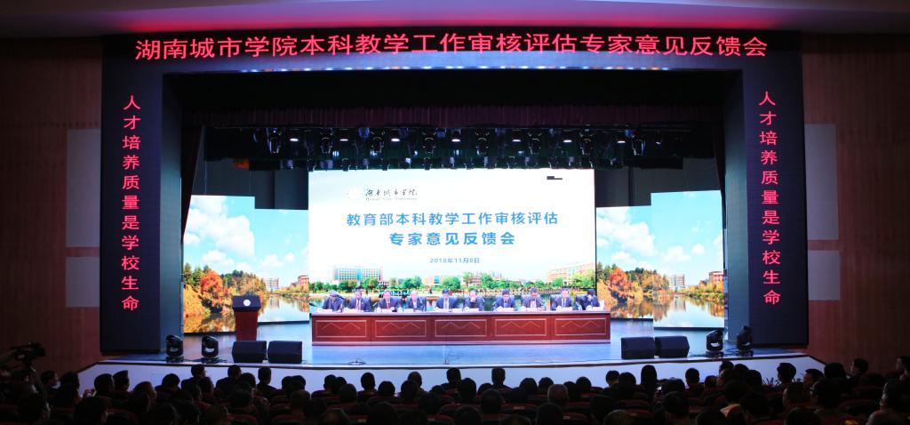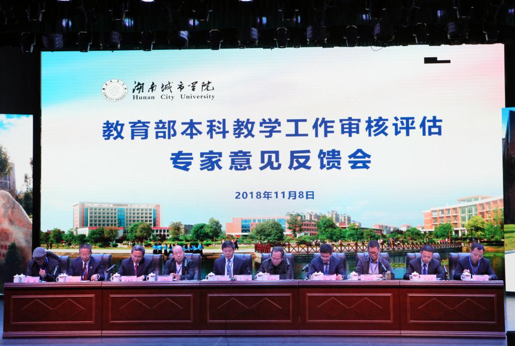 李忠献代表评估专家组向我校反馈了审核评估总体情况。他充分肯定了我校本科教学的突出亮点和成绩。他指出,学校经过48年办学积淀以及16年本科教育教学的探索与实践,本科教学工作符合审核评估提出的“五个度”要求,形成了聚焦城市化主题,对接行业产教融合,培养高素质应用型人才的鲜明办学特色,办学水平和人才培养质量明显提高。经过几天的现场考察,专家组形成了初步意见,一致认为:一是办学定位准确,目标明确。学校坚持社会主义办学方向,遵循高等教育发展基本规律,立足国家和区域经济社会发展需求,确立了建设“特色鲜明的高水平应用型大学”的定位,培养具有扎实实践能力和创新创业精神的高素质应用型人才的目标,与国家、行业以及区域经济社会发展相适应,契合时代要求和社会需求。学校提出“做强城市建设类、做大信息制造类、提质管理和文化服务类、夯实基础类”的专业发展目标,顶层设计合理,发展思路清晰。二是人才培养中心地位突出,综合改革有力。学校解放思想,坚持目标导向和问题导向,聚焦人才培养中心发力,推进应用型人才培养、专业布局结构调整、精细化绩效管理和干部人事制度等综合改革,促进了专业归类、资源集成和分类发展,实现了办学能力和效益提高。师生高度认同,支持并积极参与改革,学校领导班子团结,凝聚力和号召力显著增强,形成了干事创业良好氛围。三是实施人才强校战略,师资队伍建设稳步推进。学校坚持“人才是第一资源”的办学理念,立足应用型本科办学定位,师资队伍建设目标明确,激励、约束、评价机制不断完善。学校通过内培外引,师资队伍建设明显增强。四是办学条件持续改善,满足应用型人才培养需要。学校从制度、组织、条件和经费等方面对本科教学和人才培养提供保障,形成了“精力聚焦本科教学、决策优先本科教学、经费保障本科教学”的良好氛围。通过多方筹措增加教学资源投入,持续提质改造教学实验用房,教学条件基本满足教学需要。五是教学管理规范有序,形成教学质量保障体系。学校教学管理制度较健全,体系较完备,队伍素质不断提高,教学运行规范有序,全员服务教学的主动性较强,基本形成了包括教学管理决策、教学条件支持、教学质量实施、教学质量协同、教学质量监控、教学质量激励等维度的质量监控与保障体系。六是产学研深化融合,协同育人成效明显。学校依托城乡规划等优势特色专业,主动对接产业链和创新链,大力开展产学研合作,拥有科技部众创空间、省级重点实验室等创新平台,增速明显,有力支撑本科教学。校办产业实力较强,深度参与本科教育教学,协同育人成效明显,有效支持本科教学水平的提高。七是重视学风建设,学生综合素质不断提升。学校通过开展三风三力、六进公寓和目标管理等狠抓学风,严抓课堂和晚自习,学生管理规范有序,成效显著。学校重视学生双创教育,积极开展第二课堂活动,获评“湖南省就业创业示范学校”称号。毕业生广受用人单位好评,就业率高。