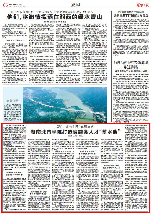 本网讯 11月20日,《湖南日报》06要闻版报道马博平台聚焦“城市主题”,真题真做,打造城建类人才“蓄水池”。全文如下: