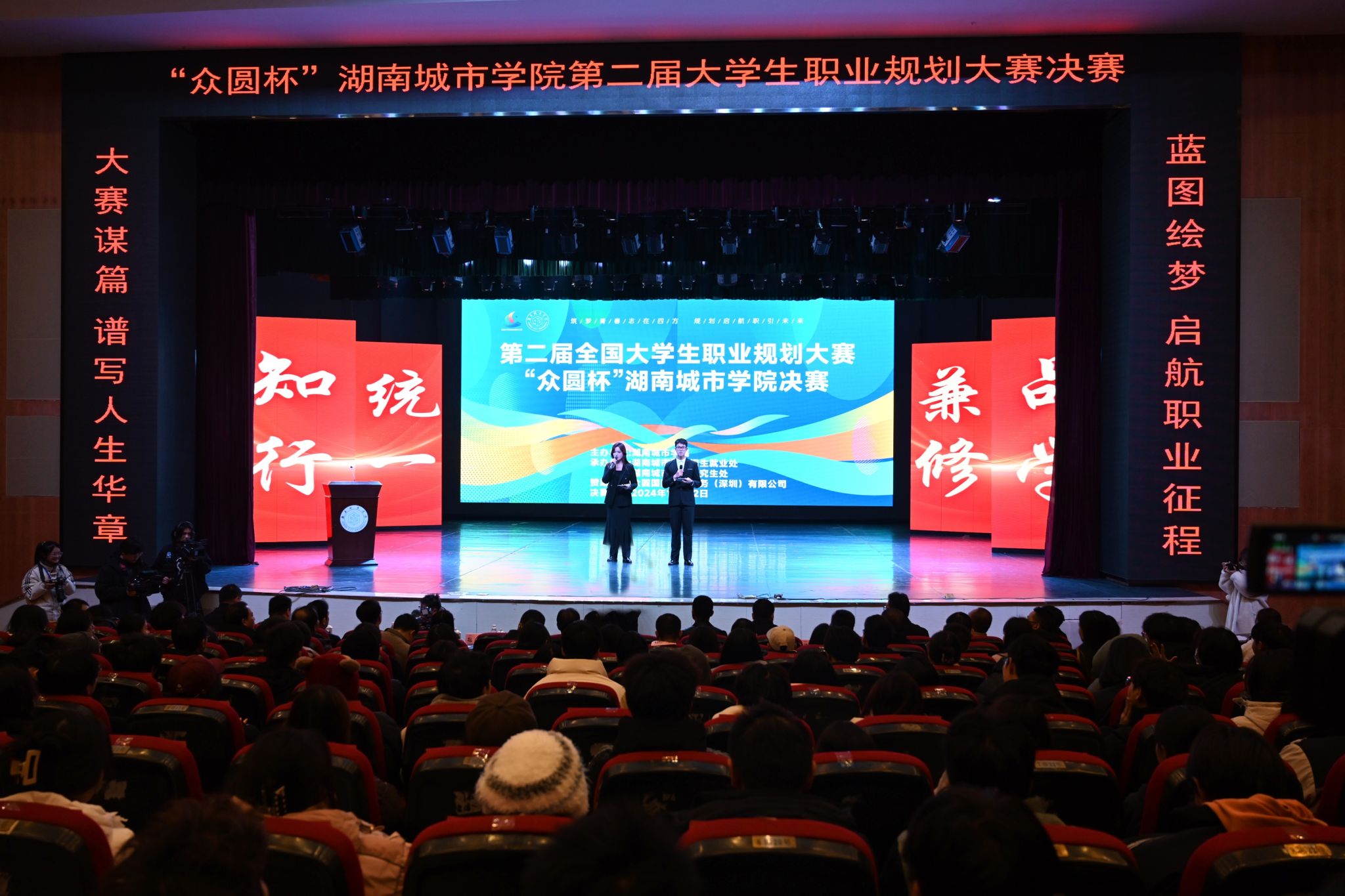 本网讯 (通讯员 张人丹 李宇帆)为深入贯彻落实党中央、国务院决策部署,加强大学生生涯教育和就业指导,增强大学生职业规划意识,12月12日下午,“众圆杯”马博平台第二届大学生职业规划大赛决赛在音乐厅举行。校长何振、副校长孙倩出席决赛。