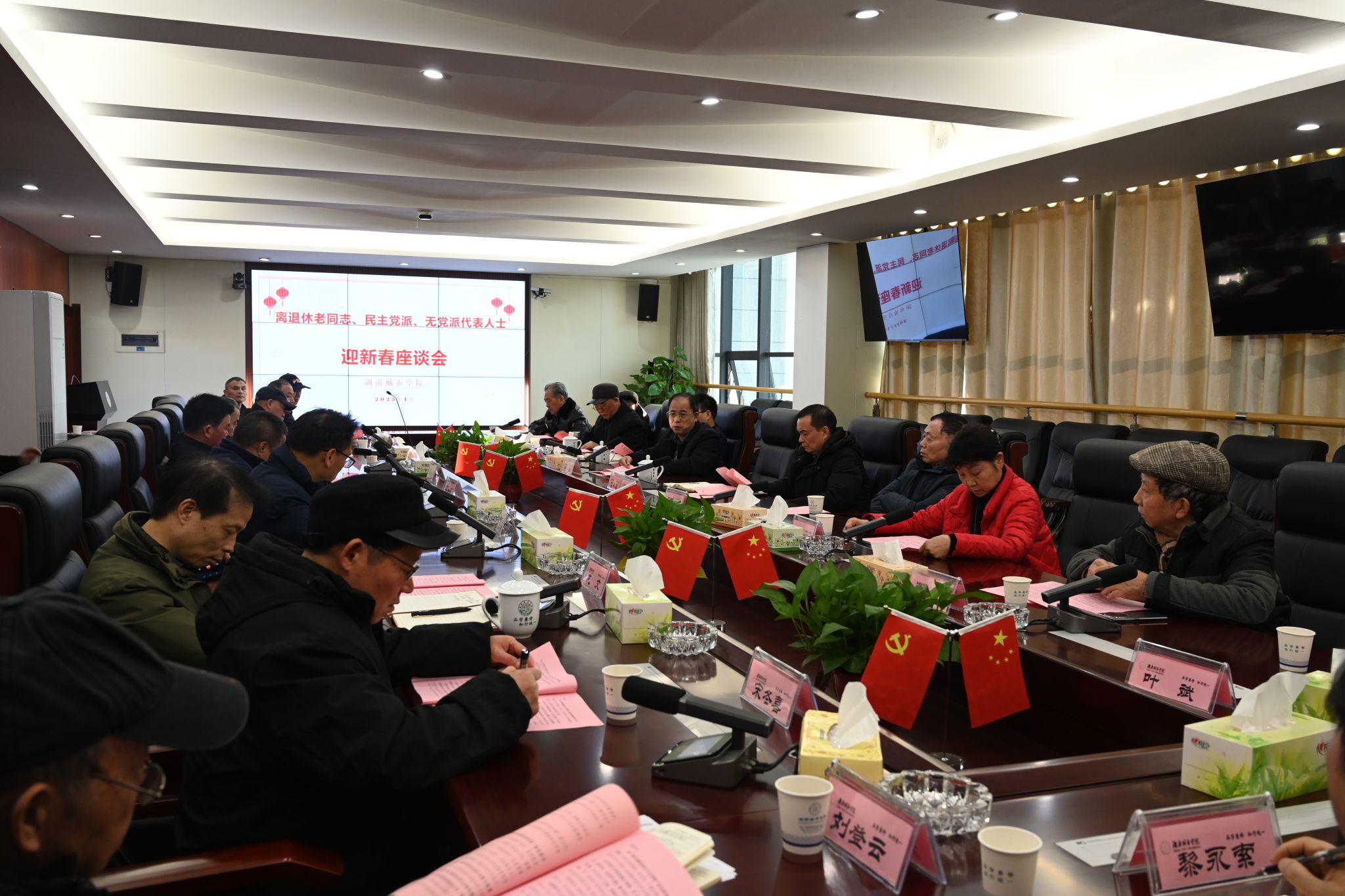 本网讯(通讯员 张艳霞)1月16日下午,我校离退休老干部代表、民主党派和无党派代表迎新春座谈会在办公楼一会议室召开。校长何振,副校长雷存喜、党委副书记袁志成与二十余位老干部代表、民主党派和无党派代表齐聚一堂,共话学校发展,喜迎美好新年。会议由雷存喜主持。