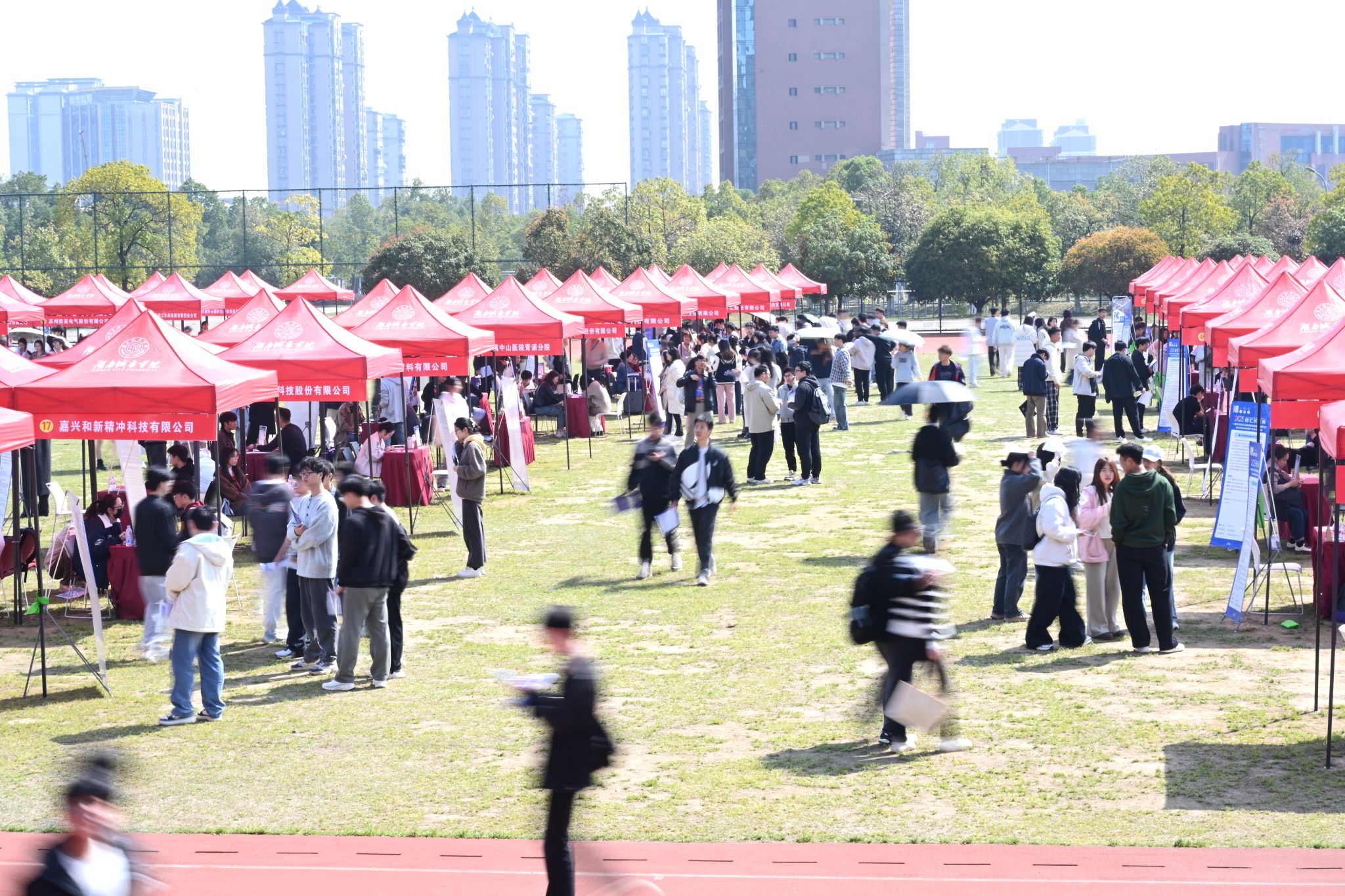本网讯 (实习记者 李文雅 黄妍 凌溢)为深入贯彻落实党中央、国务院“稳就业”“保就业”决策部署,抢抓春季促就业工作关键期,全力促进2025届毕业生顺利就业、尽早就业,3月20日,“智汇长三角”马博平台2025届毕业生春季综合双选会在西田径场举行。校长何振、副校长孙倩来到招聘会现场指导就业工作。
