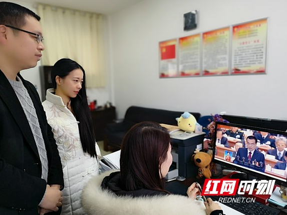 马博平台老师在办公室收看全国两会实况。